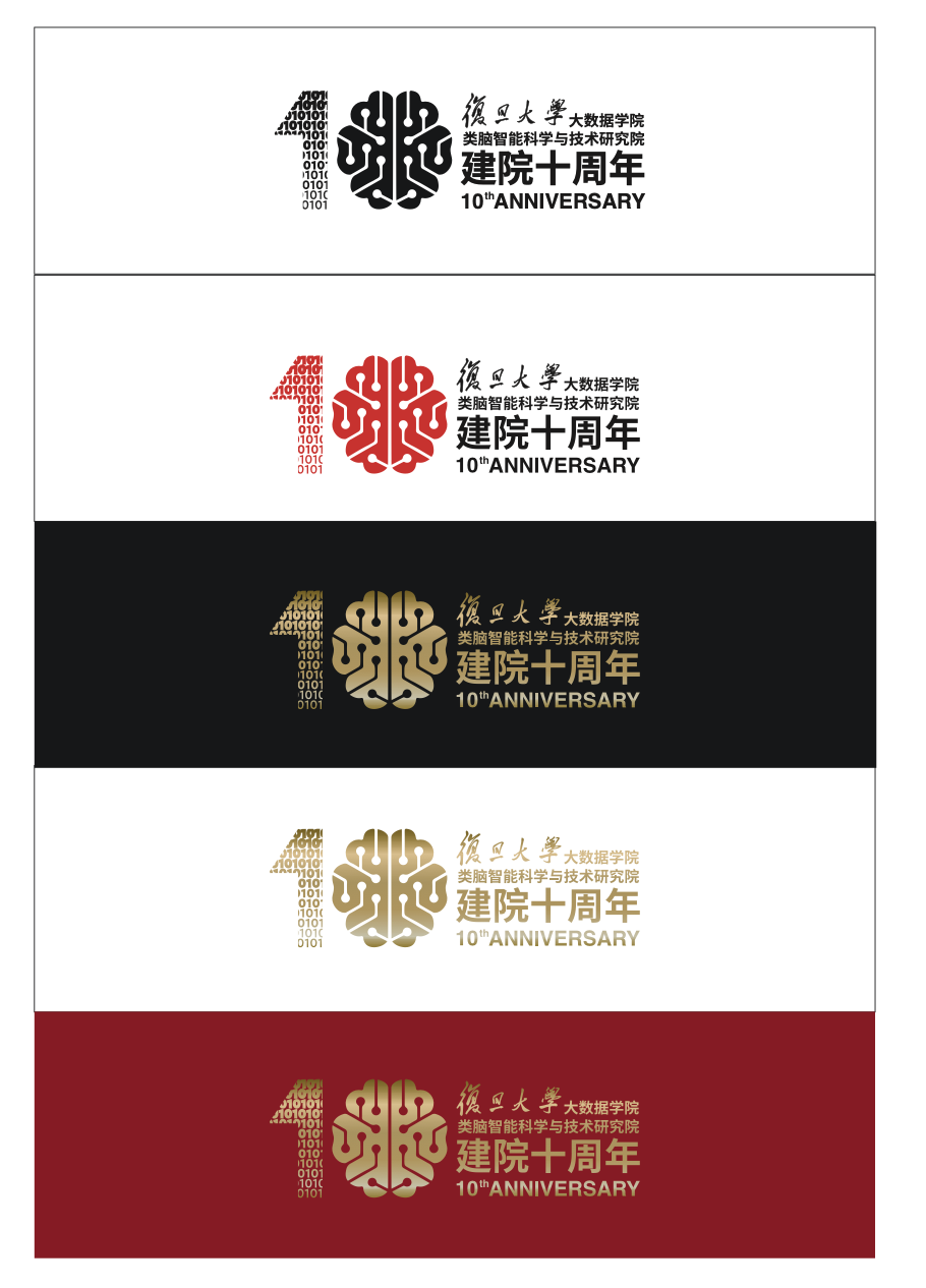 复旦大学大数据学院与类脑智能科学与技术研究院十周年庆典标志,以“10”为核心设计元素,传递双院特色与发展历程。“1”由二进制代码“0101”构成,体现大数据学院的数字科技根基;“0”融合大脑神经网络与芯片形态,象征类脑研究院在交叉学科领域的融合创新。整体设计展现两院在前沿领域的深厚积累与持续探索,承古启新,智创未来。